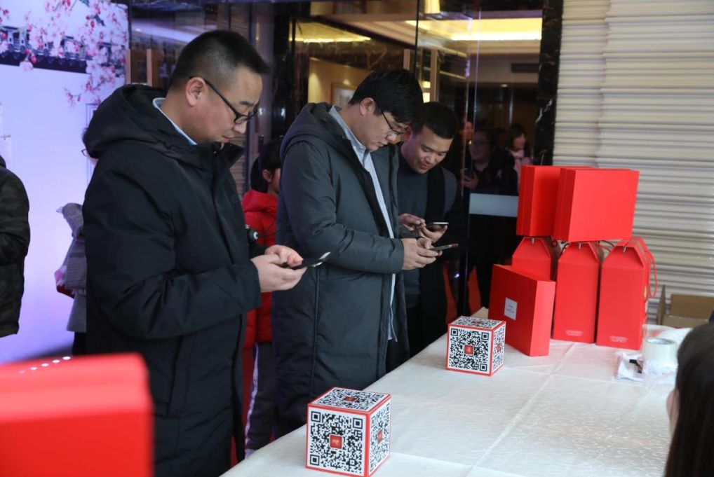 ▲三位型男正在掃碼簽到
