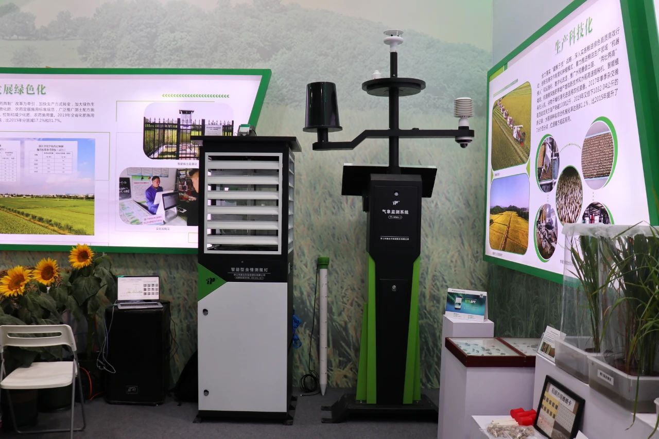 在展位一角,擺放著幾臺顏色鮮艷的“大家伙”,它們就是托普云農研發的針對病蟲害測報的智能裝備。