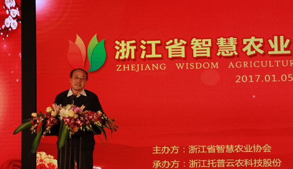 浙江省人民政府參事方泉堯宣讀建立浙江智慧農(nóng)業(yè)協(xié)會的批復(fù)