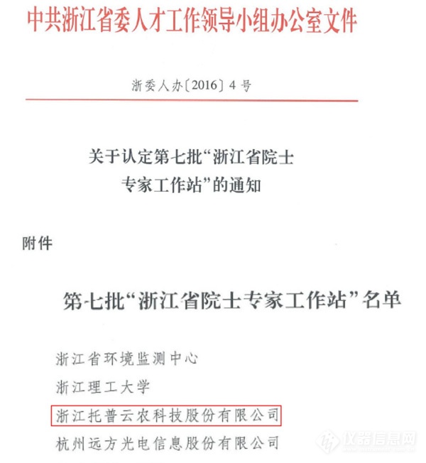 7月25日,中共浙江省委人才工作領導小組辦公室公布了第七批“浙江省院士專家工作站”名單,此次共有22家單位上榜,杭州市2家。浙江省托普云農科技股份有限公司(以下簡稱“托普云農”)成為浙江農業信息化領域內第一家獲此殊榮的企業。