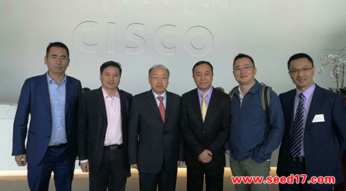 周國輝廳長(左三)、陳渝陽董事長(右一)一行在思科