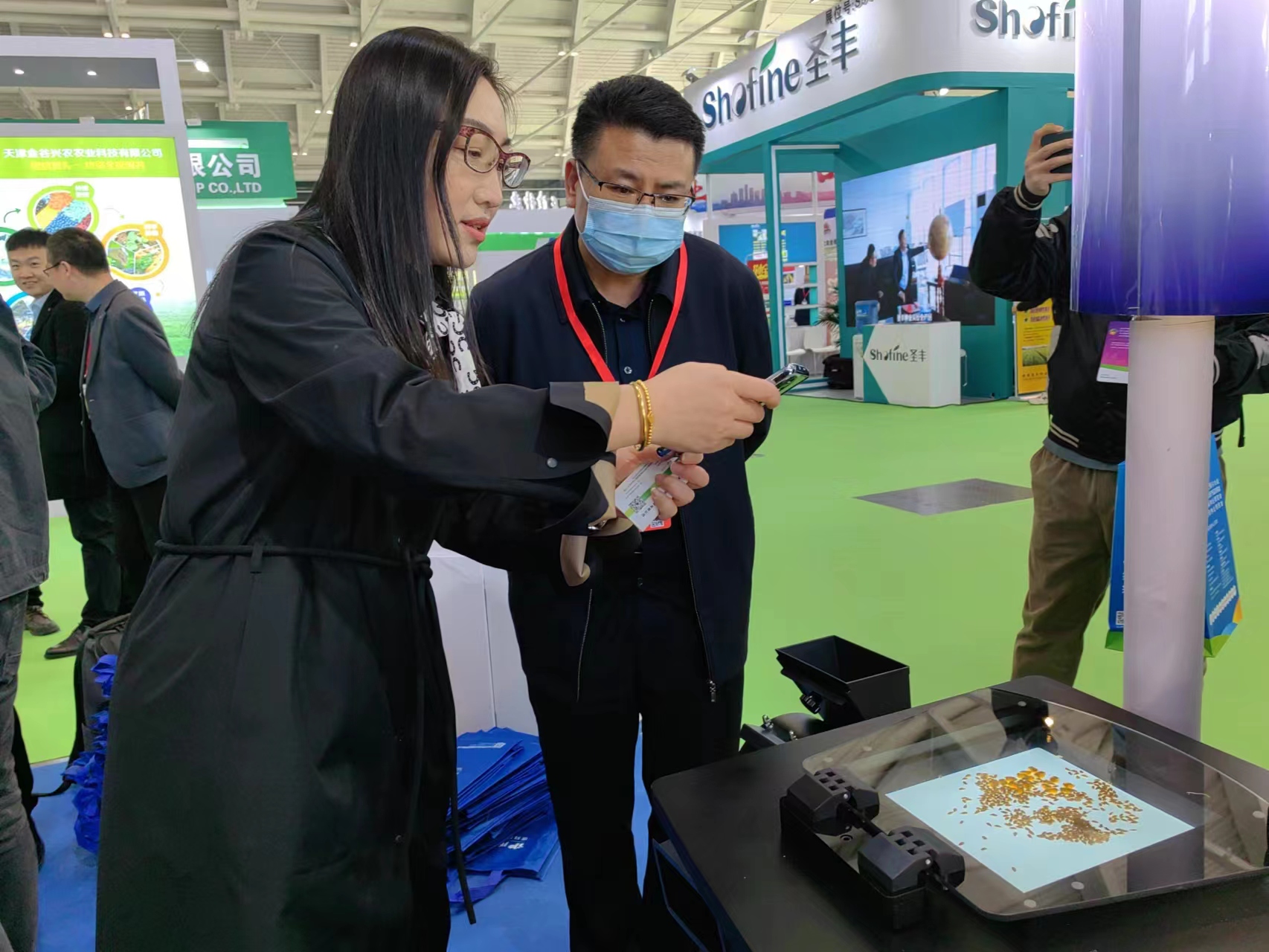本次展會(huì),托普云農(nóng)還特別打造了 “AI識(shí)別”體驗(yàn)區(qū)。通過(guò)機(jī)器視覺(jué)識(shí)別、深度學(xué)習(xí)和植物遺傳學(xué)等多學(xué)科交叉合作,托普云農(nóng)積累底層數(shù)據(jù)和搭建數(shù)據(jù)庫(kù),在不破壞種子的情況下,對(duì)種子表型特征進(jìn)行圖像采集、處理及算法分析,為參觀者提供了全新的沉浸式體驗(yàn),贏得現(xiàn)場(chǎng)參會(huì)人員的熱切關(guān)注。