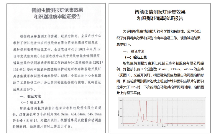 為促進智能化監(jiān)測預警技術推廣應用,引導監(jiān)測設備市場健康有序發(fā)展,全國農(nóng)業(yè)技術推廣服務中心以《農(nóng)作物病蟲害監(jiān)測設備技術參數(shù)與性能要求》(農(nóng)業(yè)行業(yè)標準NY/T 4182-2022)為驗證評價指標,開展了智能化監(jiān)測設備現(xiàn)場展示和比試,托普云農(nóng)的智能蟲情測報燈圖像自動識別綜合準確率高達97.5%,優(yōu)勢凸顯。