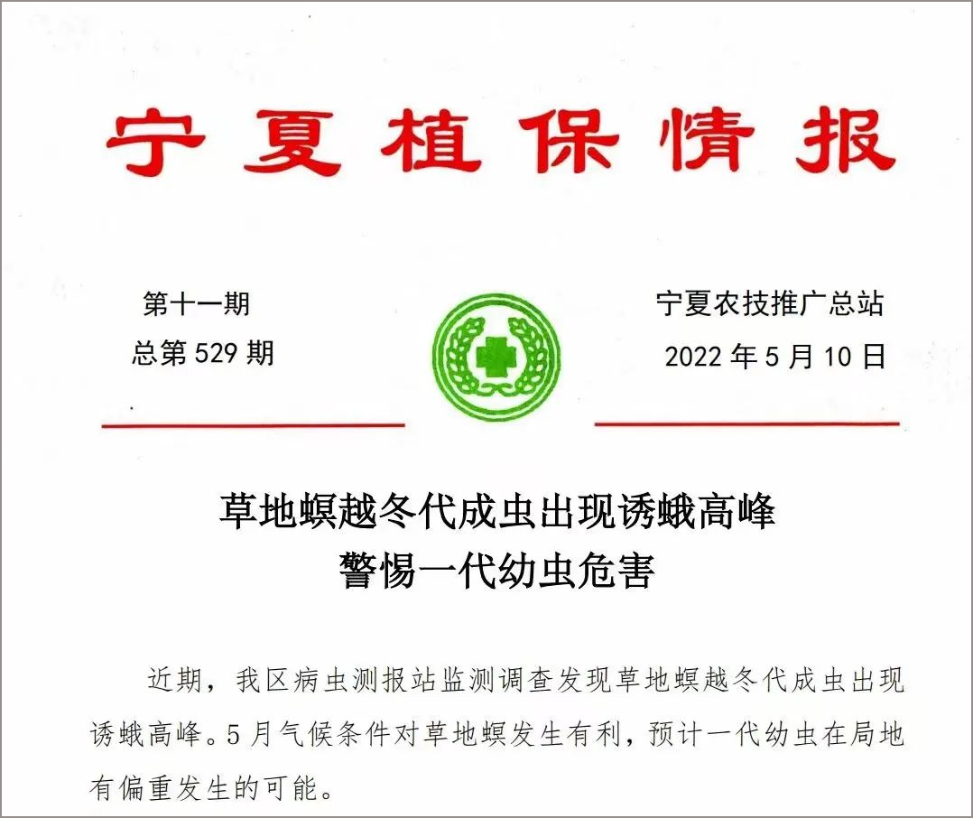 2022年5月寧夏農(nóng)技推廣總站發(fā)布蟲情簡報