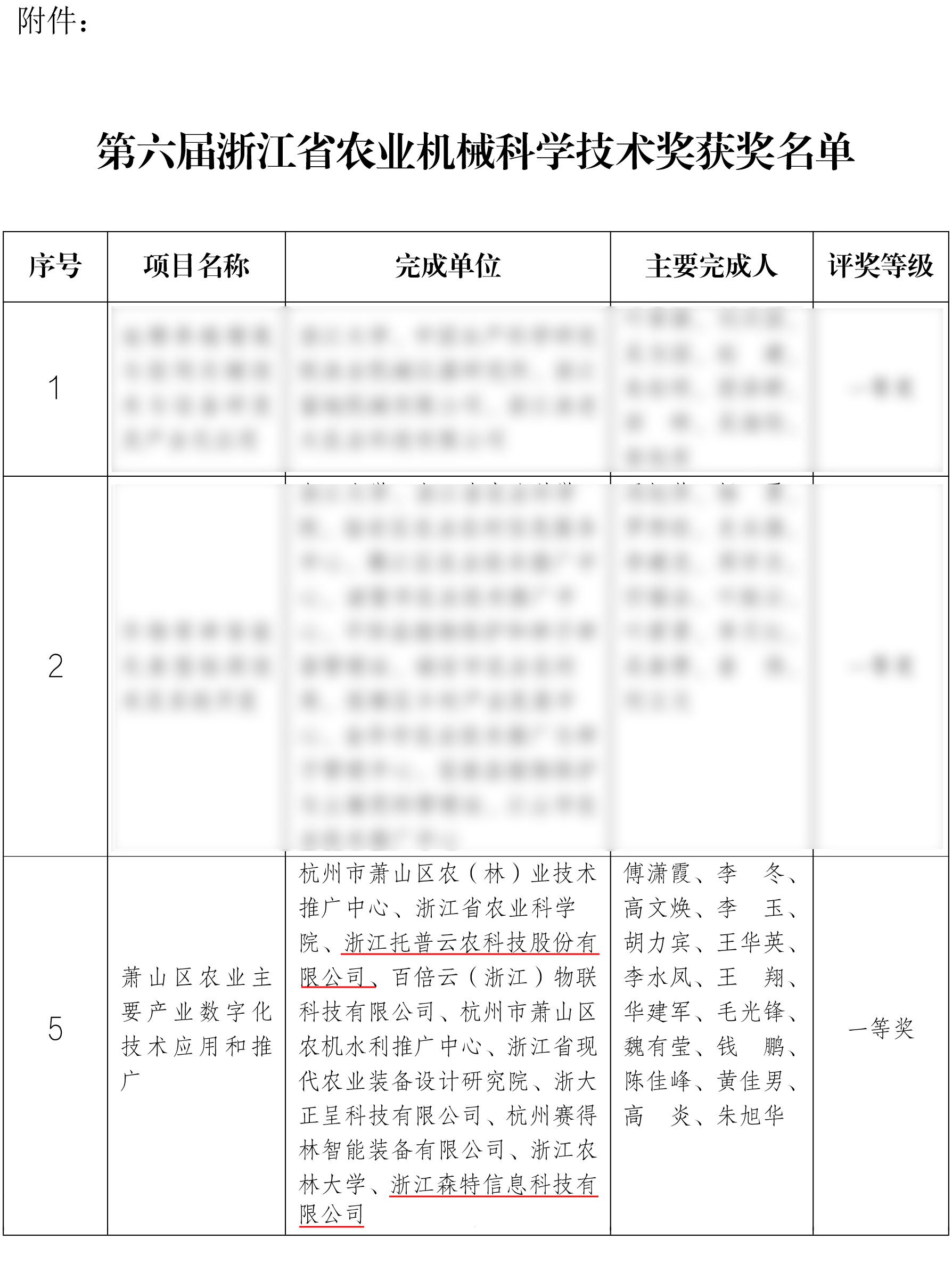 第六屆浙江省農業機械科學技術獎獲獎名單