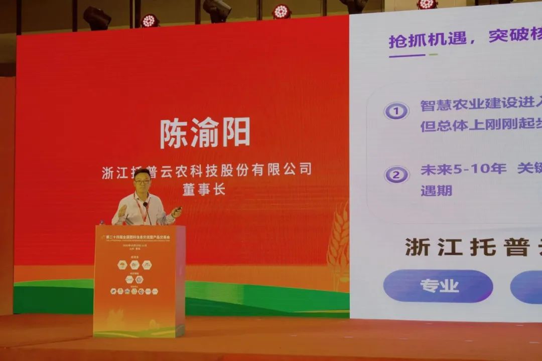 托普云農董事長陳渝陽受邀參與領軍企業座談會,并在“肥水與千億斤糧食產能提升”專題論壇上作《數字技術賦能肥水管理,助力糧食生產提質增效》主題報告。