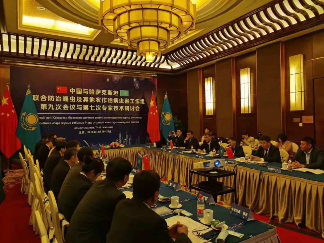 2019年12月20-22日,中哈聯(lián)合防治蝗蟲工作組第九次會議與第七次專家技術(shù)研討會在北京成功召開,農(nóng)業(yè)農(nóng)村部種植業(yè)管理司朱恩林副司長率團參加會議,中方代表團由農(nóng)業(yè)農(nóng)村部國際合作司、種植業(yè)管理司、全國農(nóng)技中心(農(nóng)業(yè)農(nóng)村部蝗災防控指揮部辦公室)、國家林業(yè)和草原局草原管理司以及新疆自治區(qū)農(nóng)業(yè)農(nóng)村廳、林業(yè)和草原局等單位的成員組成。托普云農(nóng)董事長陳渝陽作為企業(yè)代表參加會議。